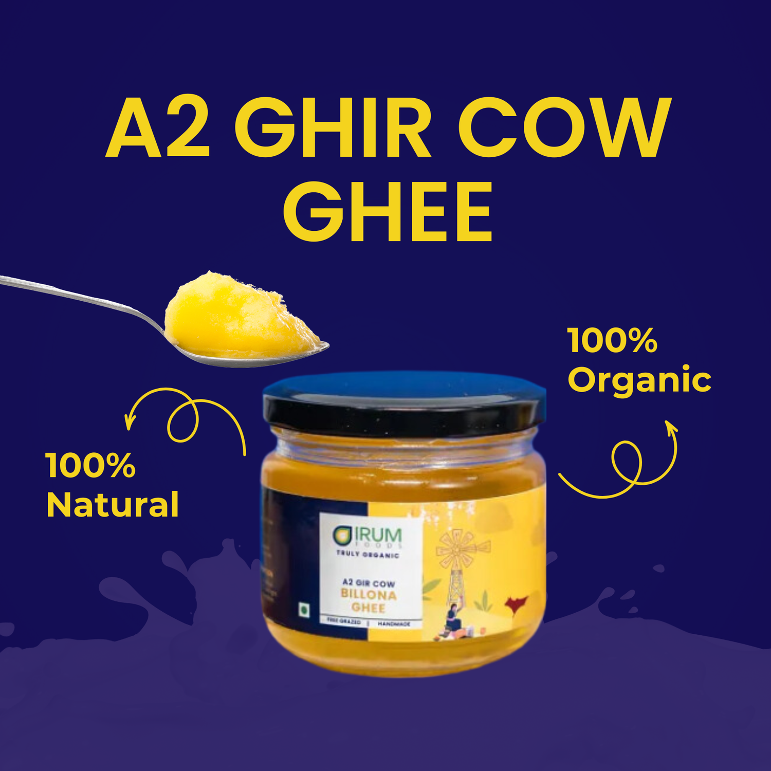 Rich, authentic taste of A2 Gir Cow Bilona Ghee from IrumFoods. Made with love and tradition, this ghee comes straight from the farm to your kitchen. Using the ancient Bilona method, we ensure every jar is filled with the best nature has to offer.